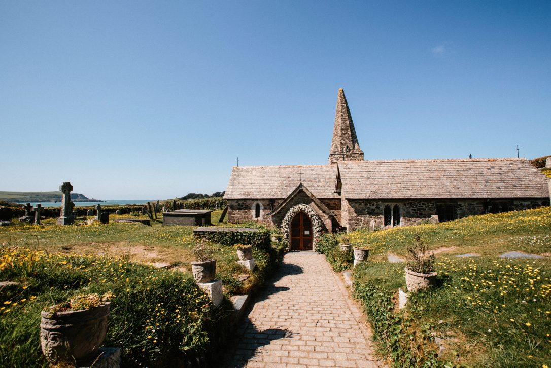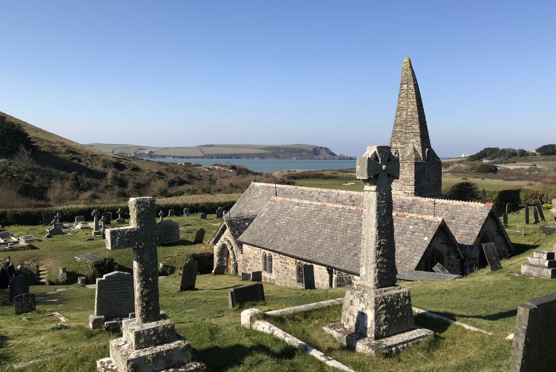 You will come out onto the St Enodoc Golf Course. Keep walking straight and you will see the church spire in the distance.