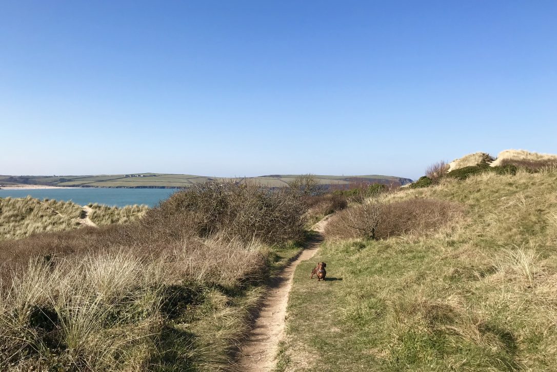 The coast path opens out to the sand dunes to the side of Daymer Bay. Your dog will love exploring the network of paths here.