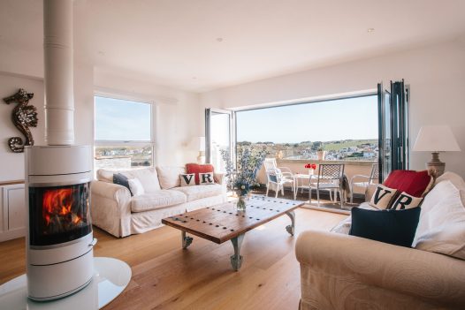 Open up the large sliding glass doors to the balcony and sit and watch as the tide rises and falls. In the winter enjoy listening to the sounds of the sea from the comfort of the plush sofas.