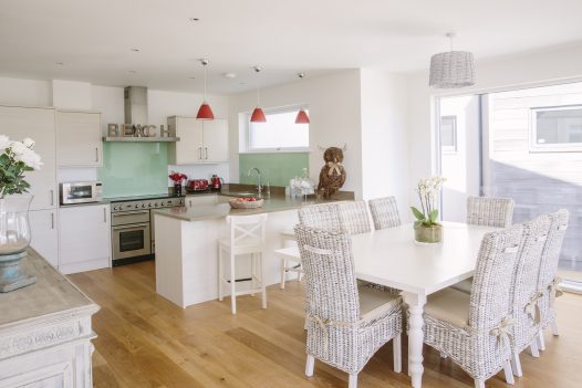 The sleek white log burner takes centre stage in Vinnick Rock. Spin it round if you want to watch the flames flicker from the dining area. Whether it's a family night in with a board game or a movie marathon, Vinnick Rock's stylish social spaces are perfect for a cosy night in.